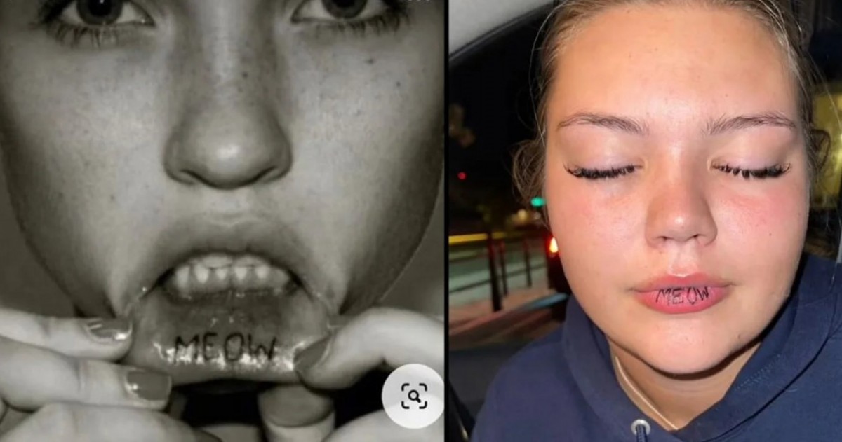 Parece que hubo un error de cálculo en el tatuaje y el resultado no fue el esperado porque quedó completamente expuesto en su boca, lejos de la idea que ella tenía, que estaba más adentro.