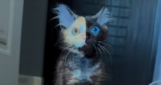 Un gato con pelaje partido en dos colores y ojos de distinto tono se convirtió en sensación en las redes sociales, donde muchos usuarios se preguntaron si la imagen era real.