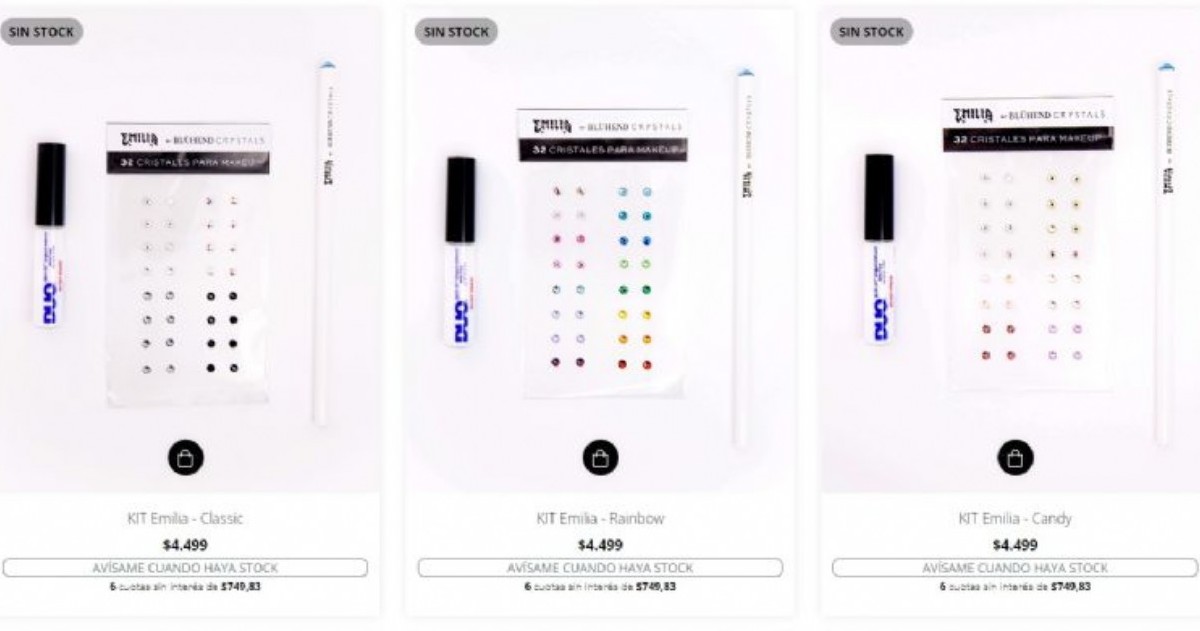 En las redes sociales comenzó a viralizarse este nuevo emprendimiento por sus elevados precios. Los Kit Classic, Kit Rainbow, Kit Candy cuentan con los brillitos de cristal europeo más pegamento y lápiz aplicador y sus precios son de $4500. Por otro lado, la versión simple está $2399.