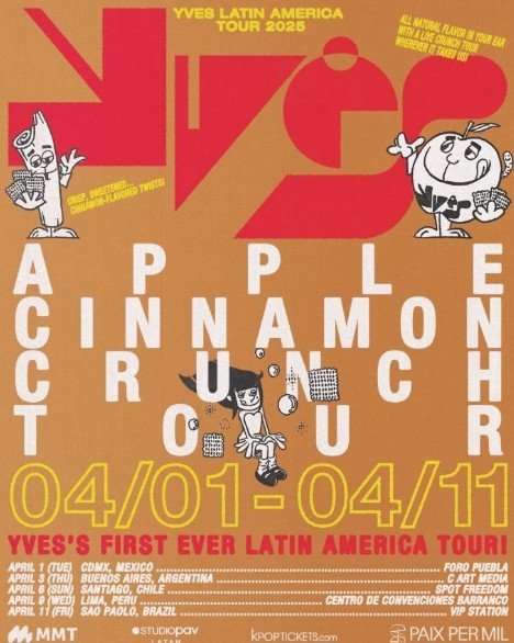 Yves ex integrante del grupo de K-Pop LOONA, anunció la pata Latinoamericana de su "Apple Cinnamon Crunch Tour" y, para la alegría de los fans, Argentina está incluída.