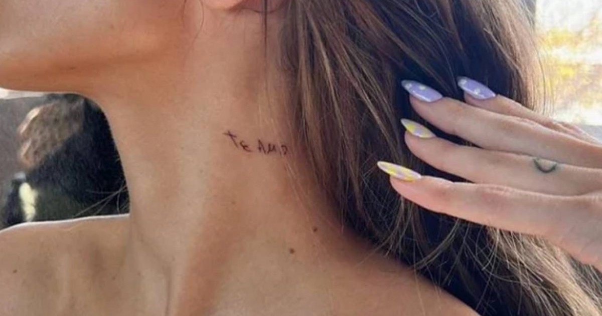 En una de las imágenes, se puede ver a Tini mostrando la parte lateral de su cuello, en el que lleva un tatuaje muy especial que dice “te amo”. A simple vista, parecería que se habría tatuado el mensaje que alguien le escribió en un papel. Y así fue.