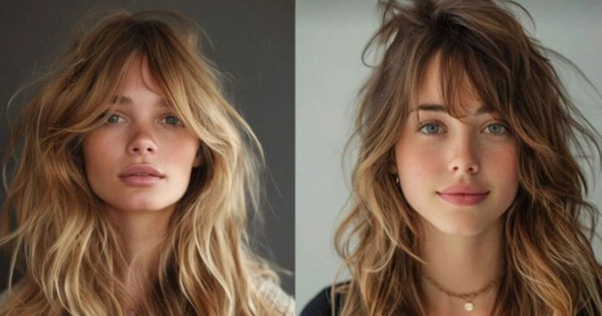 -Curtain bangs con capas: El flequillo tipo "cortina", es decir, que parte desde el centro y cae suavemente hacia los lados, ayuda a alargar visualmente el rostro y estilizarlo. Si se combina con capas suaves y ligeras, se logra una melena con el volumen necesario alrededor de pómulos y clavículas. Es ideal para rostros redondos, pequeños y con frente amplia.
