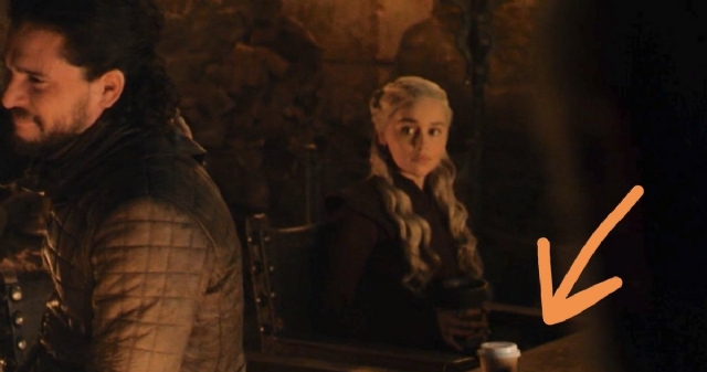 El desliz en el 8x04 de 'Juego de Tronos': Parece que en el episodio 4 de la última temoporada de Juego de tronos hacía tanto frio que Daenerys se pasó por starbucks a comprar un café. ¿Quién revisa los episodios de esta serie antes de que se emitan?