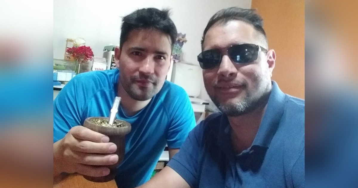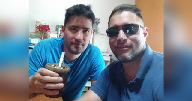 Cristian con su amigo mateando desde San Juan.