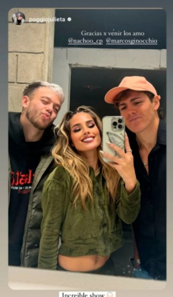 Al ver la mención de Julieta en su Instagram, Marcos no dudó en compartirla y felicitarla públicamente por su trabajo: “Increíble show”.