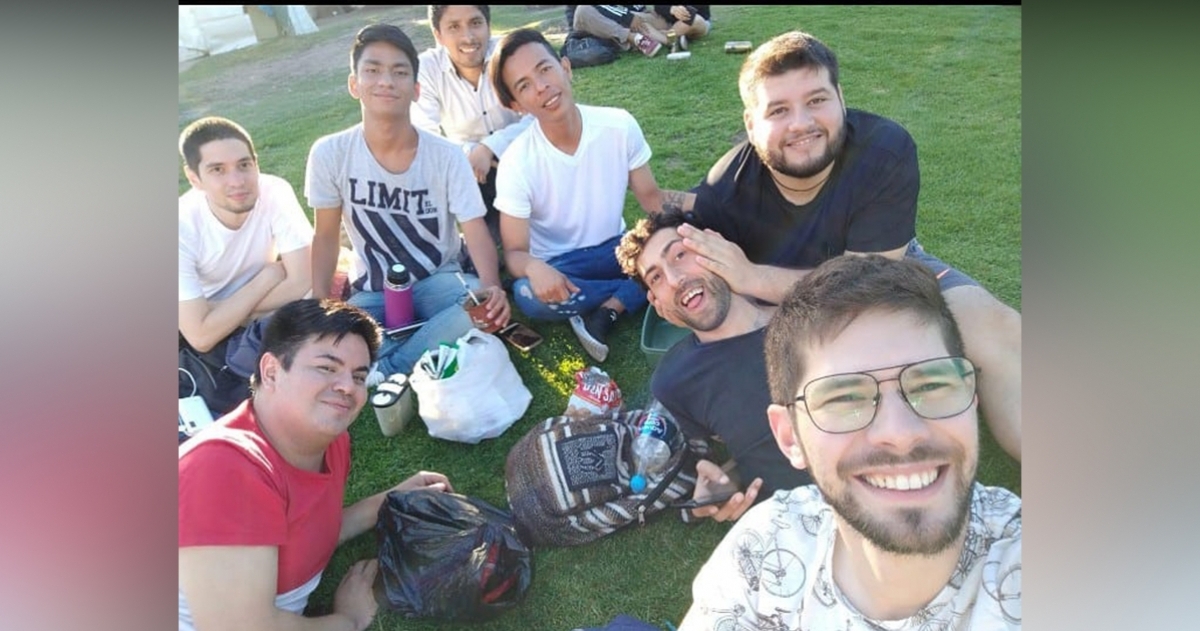 Antonio y sus amigos mateando en Plaza Francia, CABA.