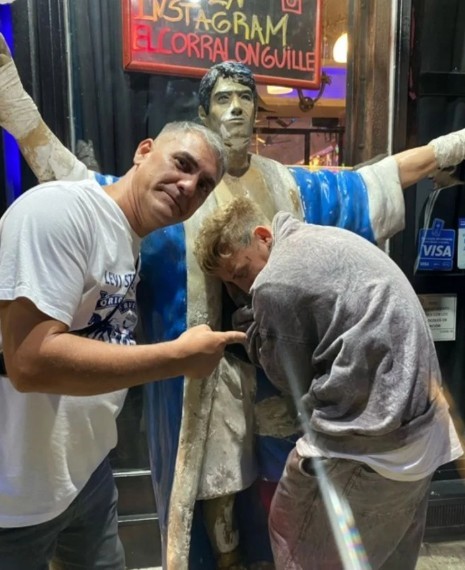 En un momento de la noche, el artista de cumbia también se fotografió abrazado a una estatua de Rodrigo para demostrar la admiración por el cantante que murió en un accidente a sus 27 años.