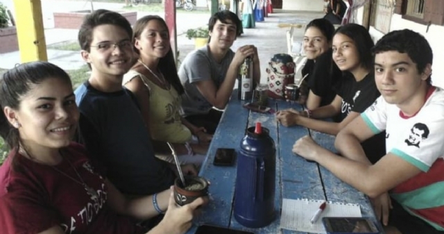 Laura y jóvenes compartiendo unos mates en Corrientes.