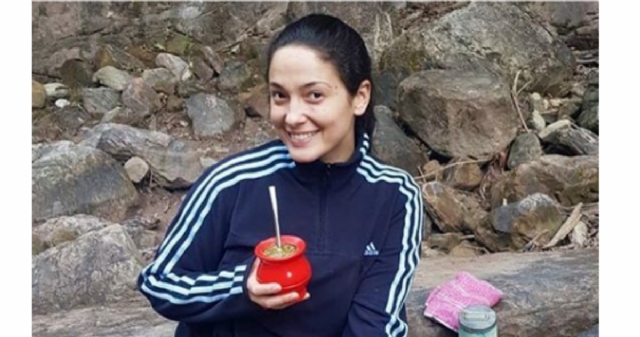 Lucrecia mateando y disfrutando el paisaje. Salta.