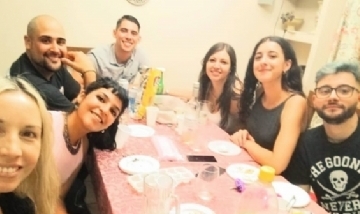 Mauro y sus amigos de peña, cenando en Mendoza.